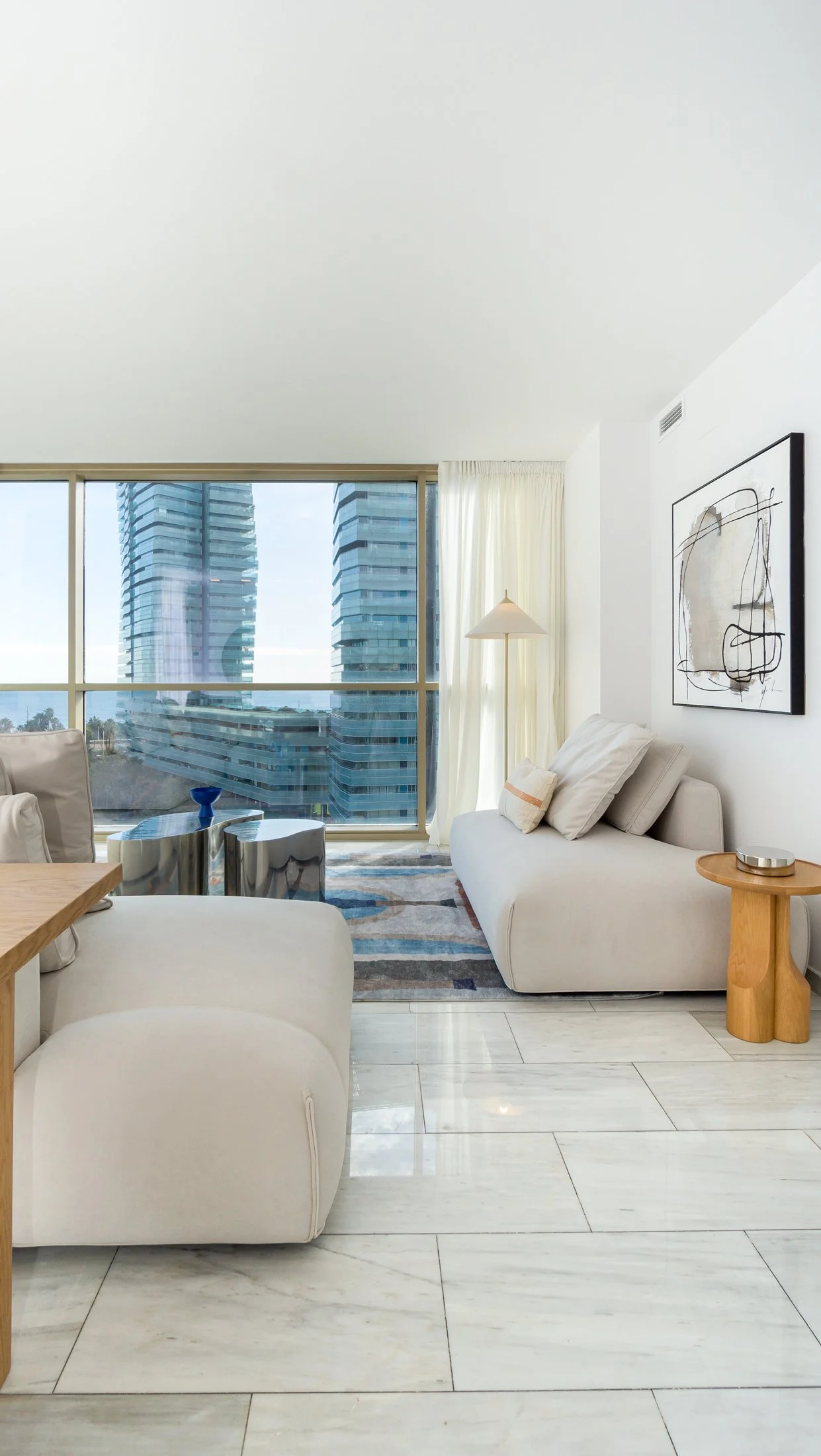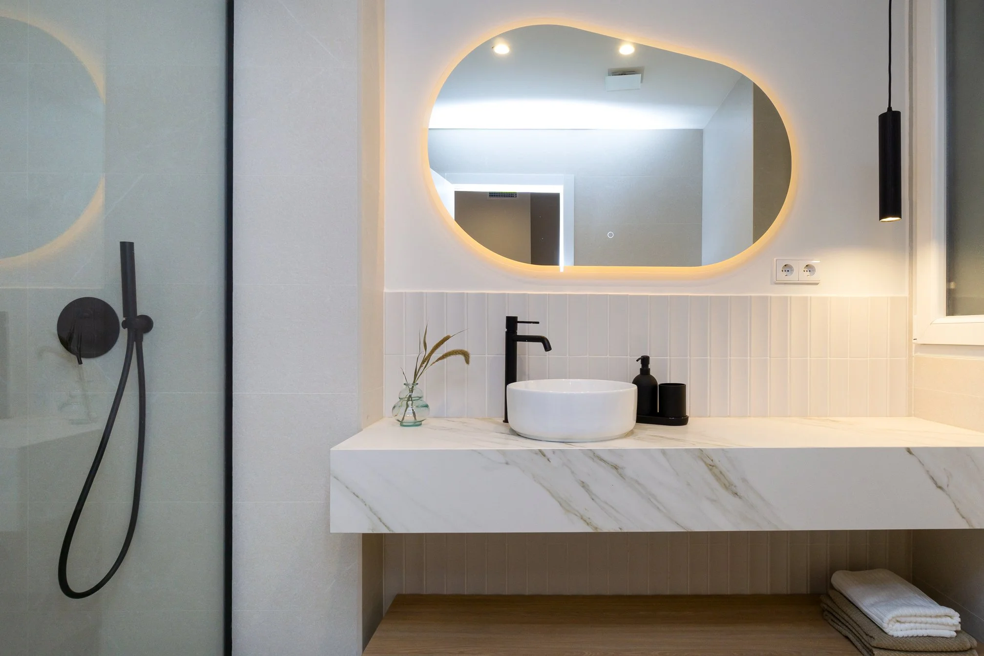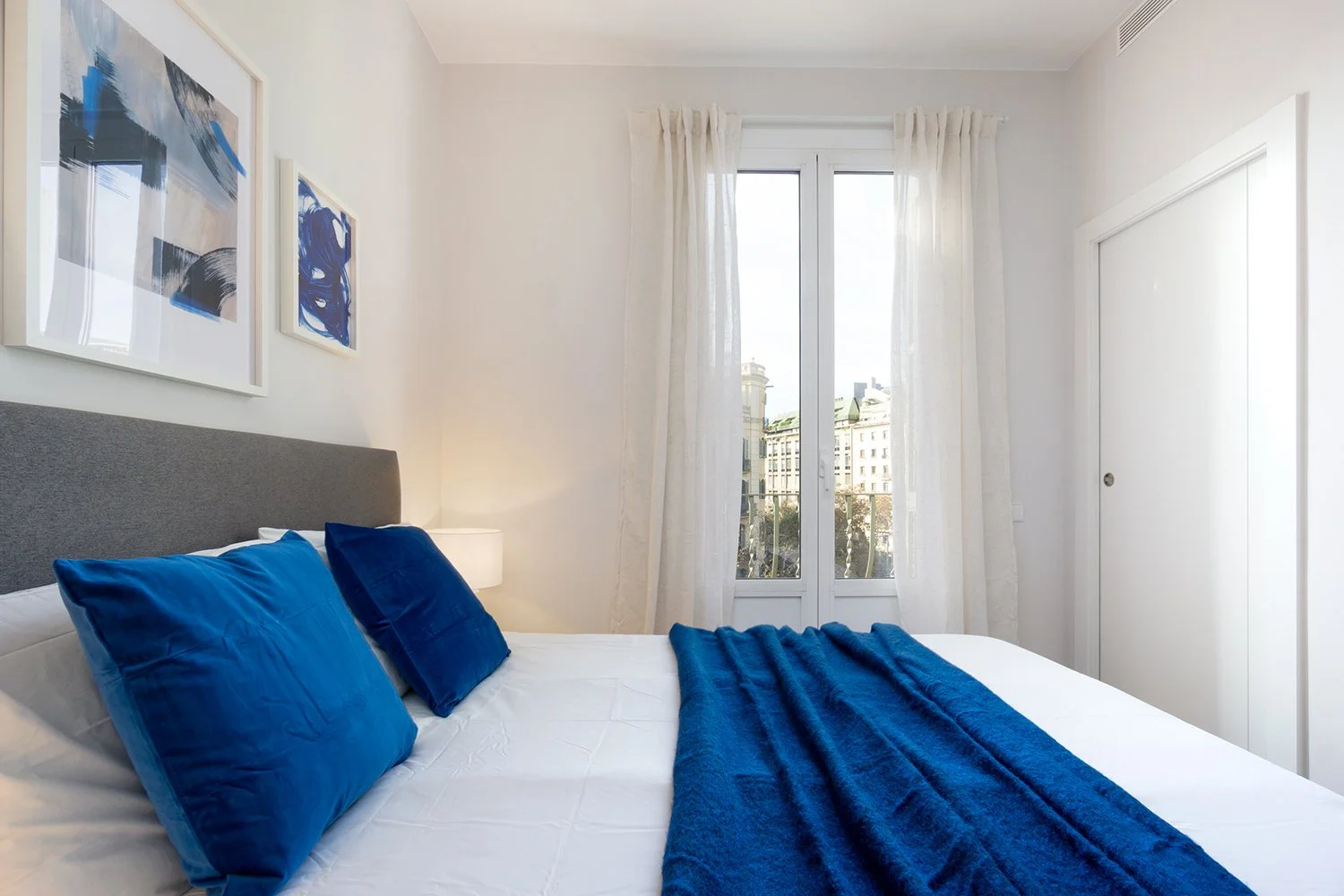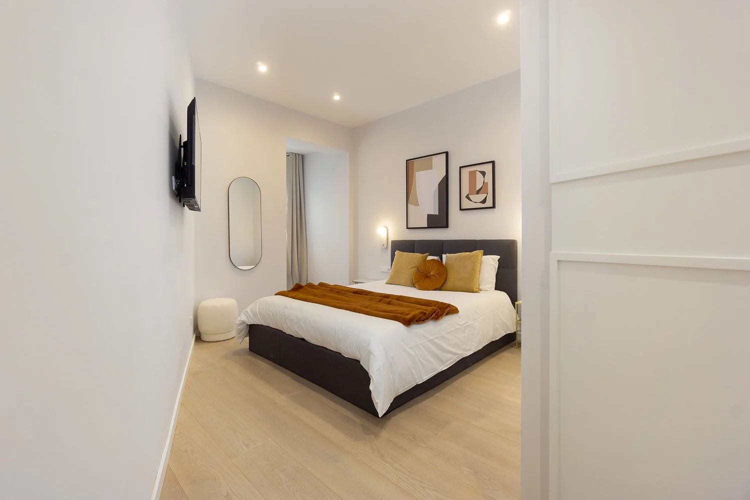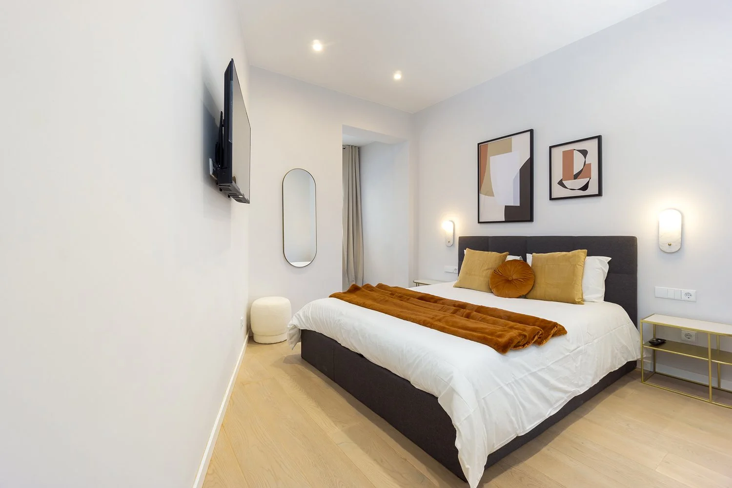Reforma completa de un piso con tres habitaciones en suite, diseñado para el mercado de alquiler temporal. La cocina con barra abierta al salón crea un espacio social y funcional, mientras que los colores y formas modernas aportan carácter y atractivo visual. Un proyecto pensado para destacar por su estilo y comodidad.