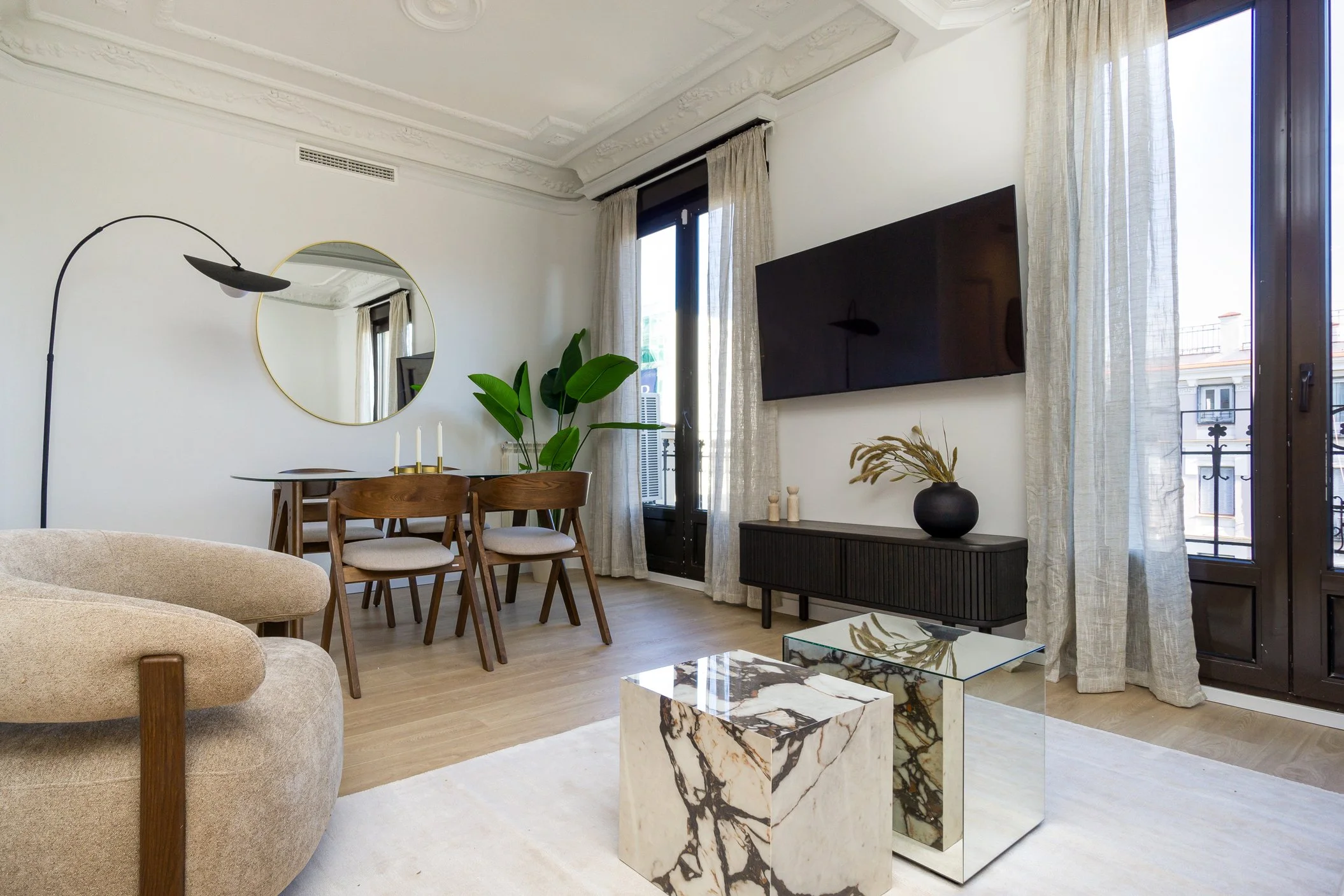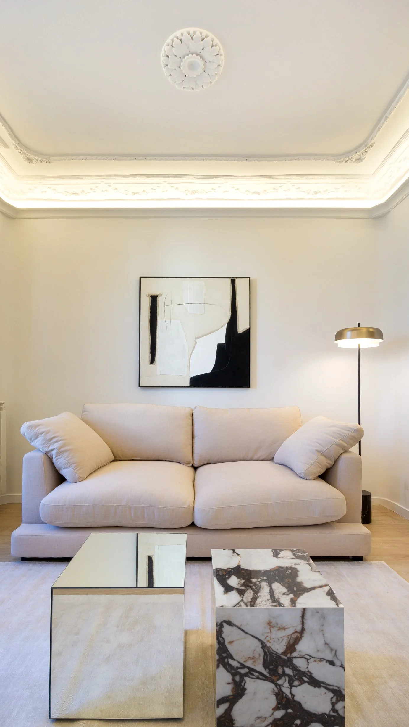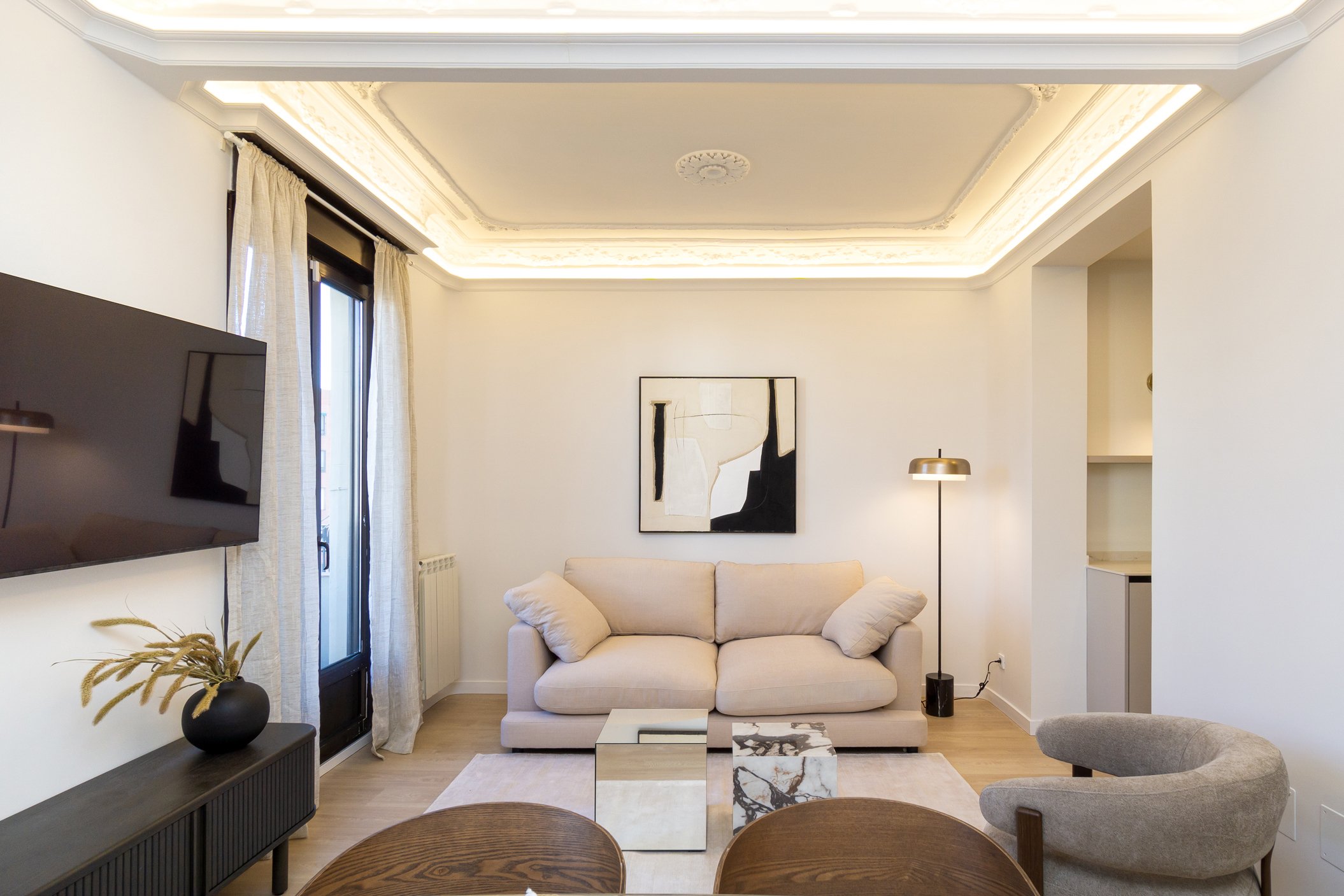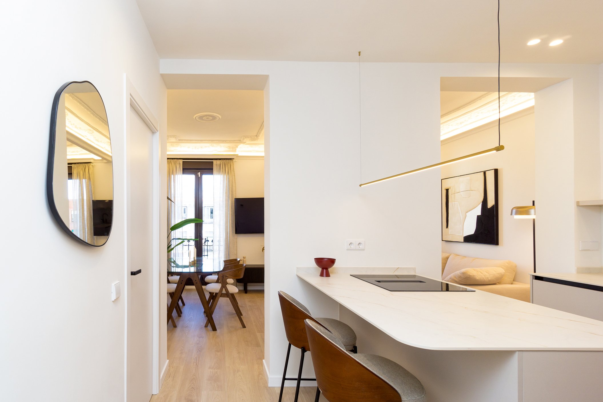 Reforma integral con proyecto de decoración, inicialmente concebido como inversión, pero que terminó convirtiéndose en segunda residencia para sus propietarios. Un refugio acogedor en Madrid donde la calidez se combina con una elegancia cuidada.